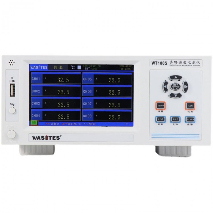 WASITES WT100S Series Multi-Channel Temperature Recorder (WT100S-8 8CH) with 5" Touch Screen & Alarm