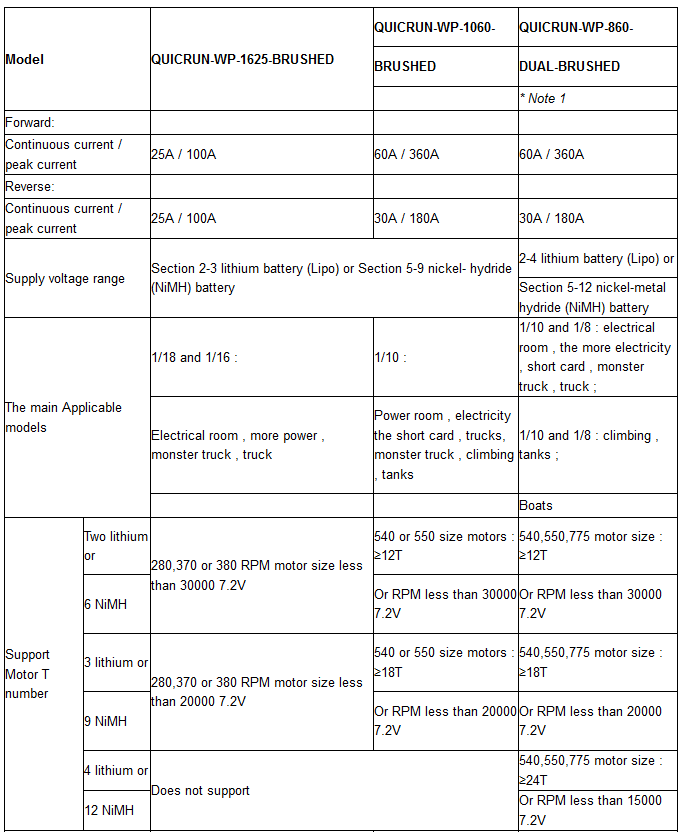 - 1 x WP-1625 Brushed ESC