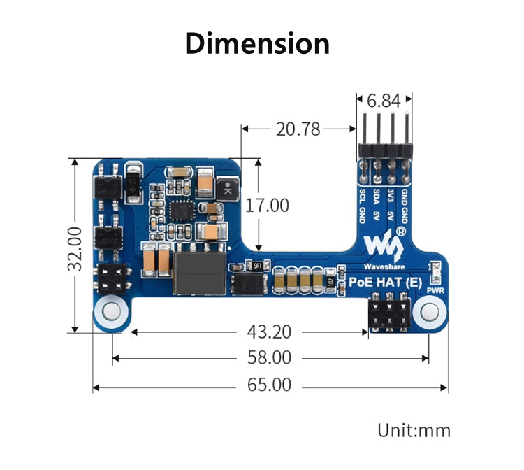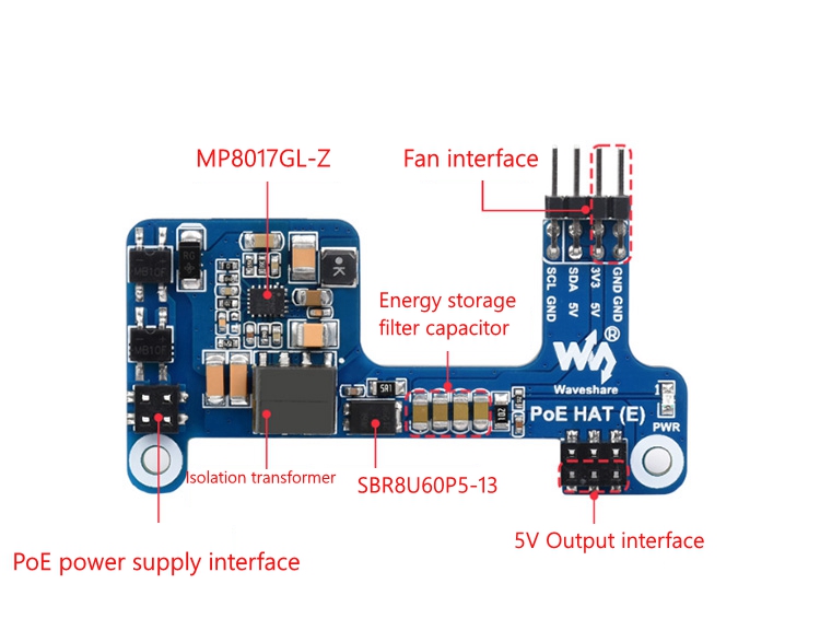 Waveshare PoE HAT (E) Expansion Board 3B+/4B Power over Ethernet Mini Expansion Board Module