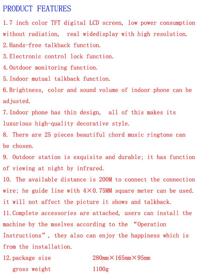 WD01H11 7" LCD HD Visual Doorbell Video Door Phone Wired Intercom Home Security