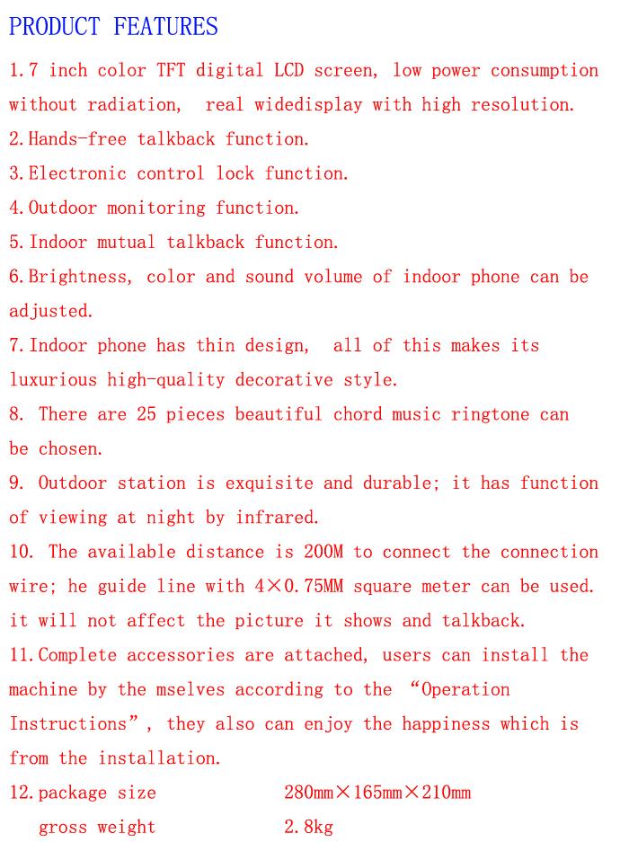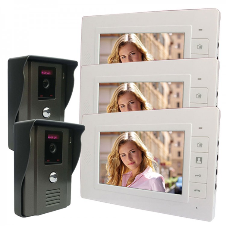 WD01H23 7" LCD HD Visual Doorbell Video Door Phone Wired Intercom 2 to 3 Home Security
