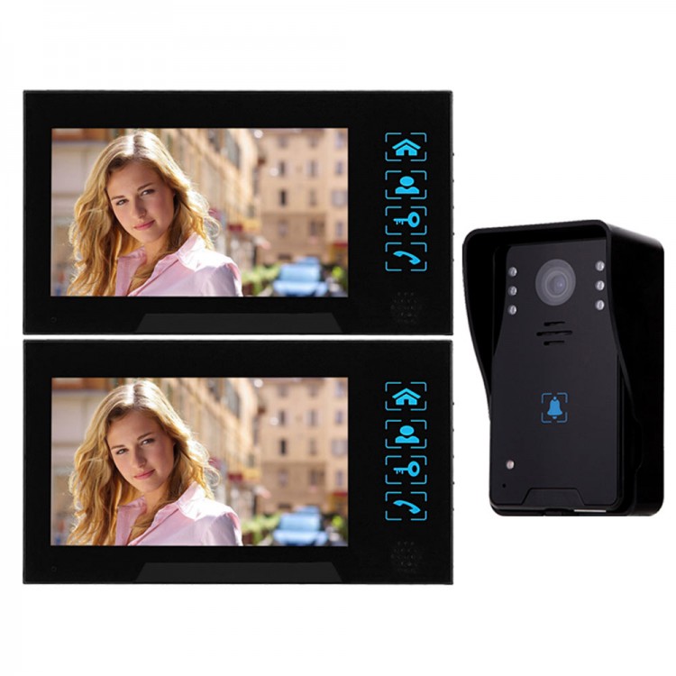 WD02K-12 7" Color LCD Video Door Phone Wired Doorbell Video Intercom 1 to 2 Infrared Night Vision