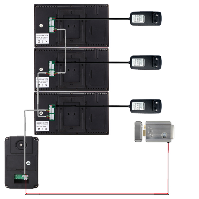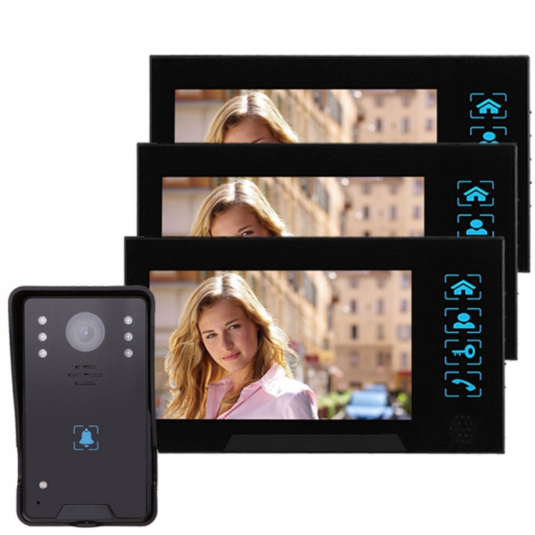 WD02K-13 7" Color LCD Video Door Phone Wired Doorbell Video Intercom 1 to 3 Infrared Night Vision