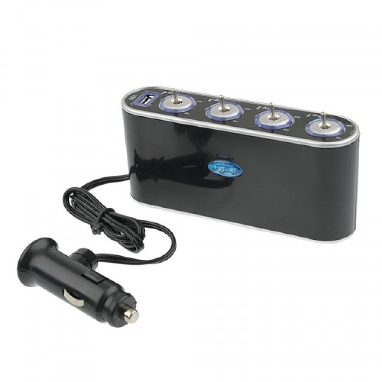 4 Sockets for Devices with car charger and 1 USB