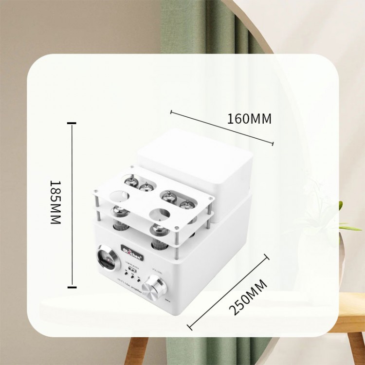 - The 6P1 electronic tube amplifier has extraordinary charm. The box is treated with high gloss paint technology, which is smooth and shiny. It is eye-catching and pleasing to the eye when placed at home; VU meter with aluminum alloy meter head ring, exquisite craftsmanship, elegant style; Pure copper gold-plated output terminals have strong texture and durability.