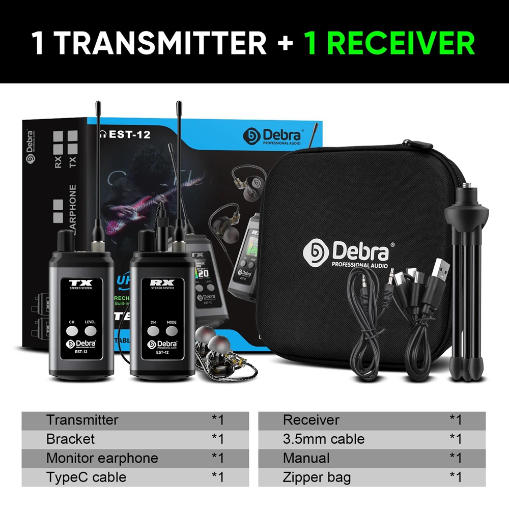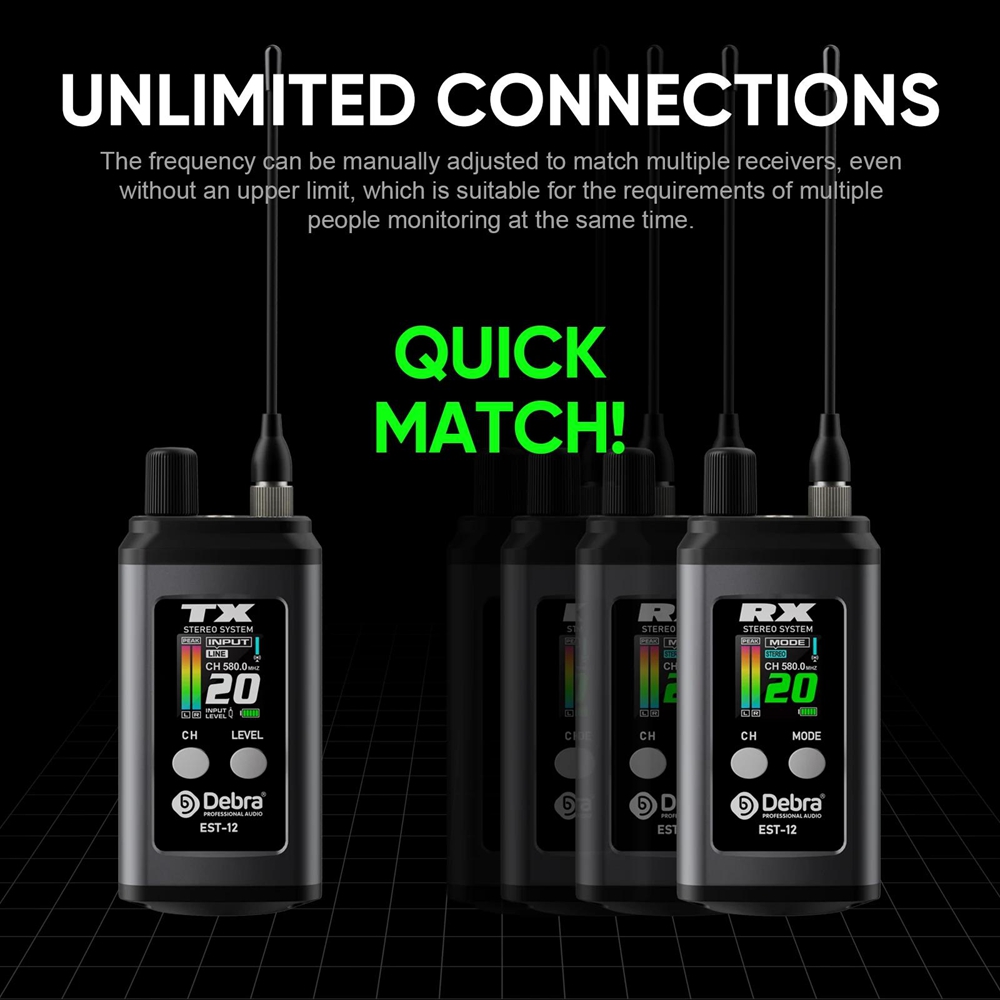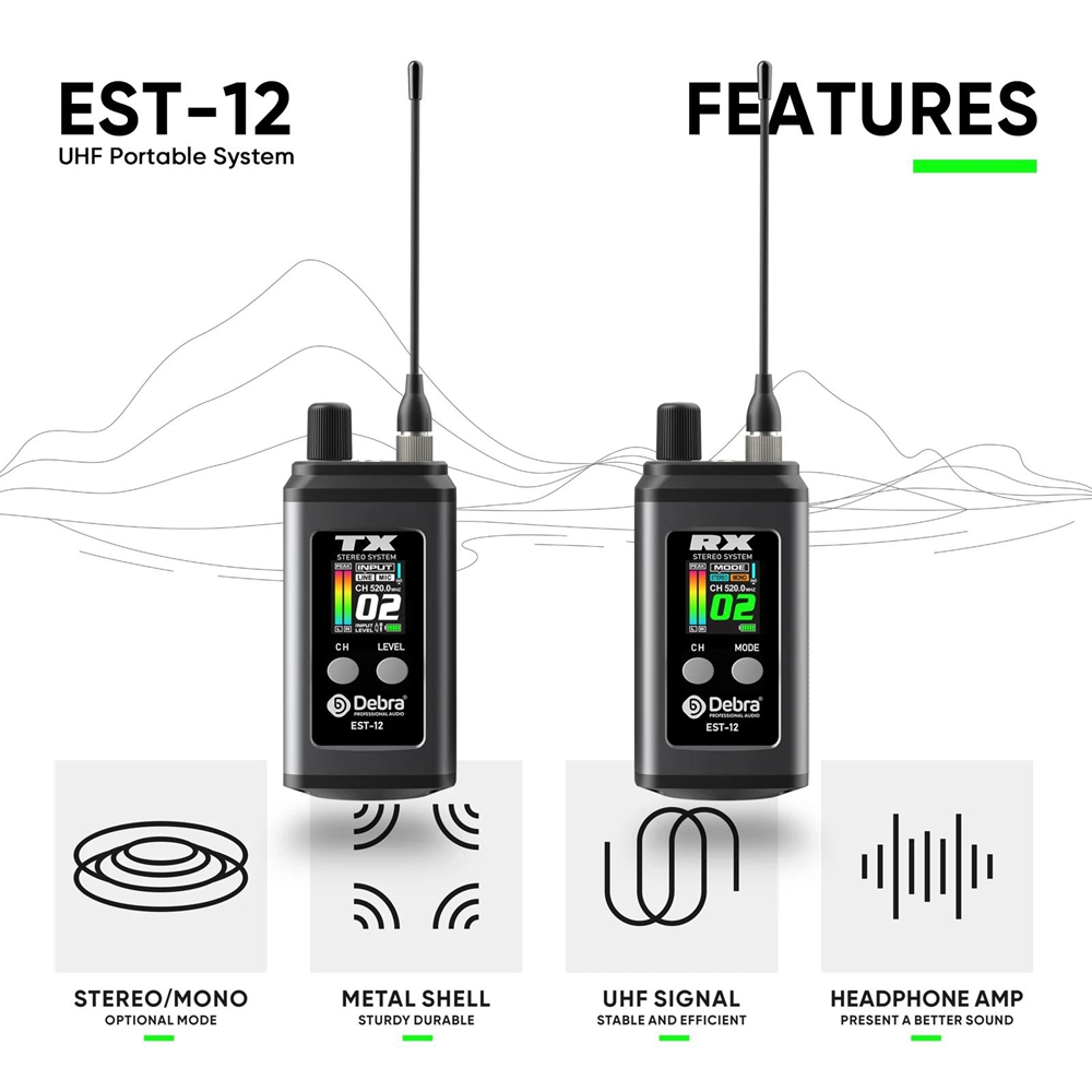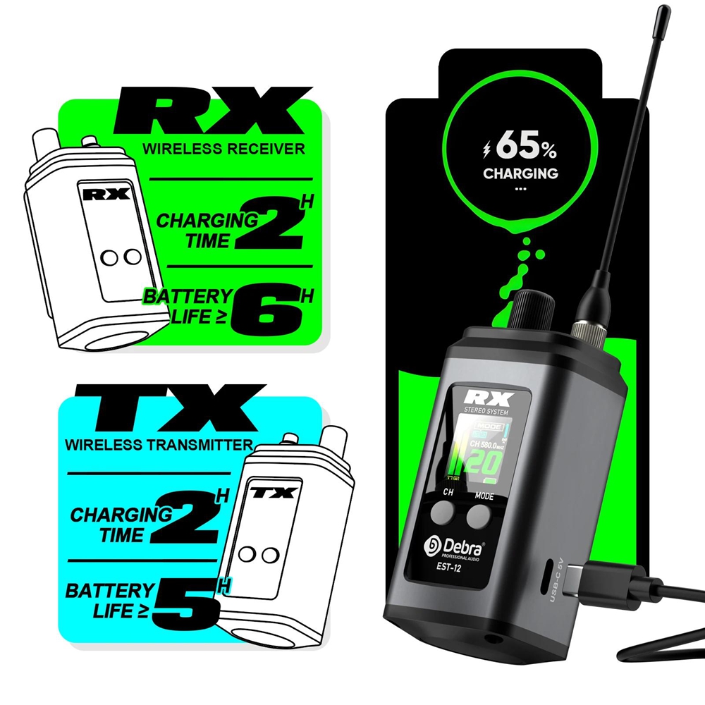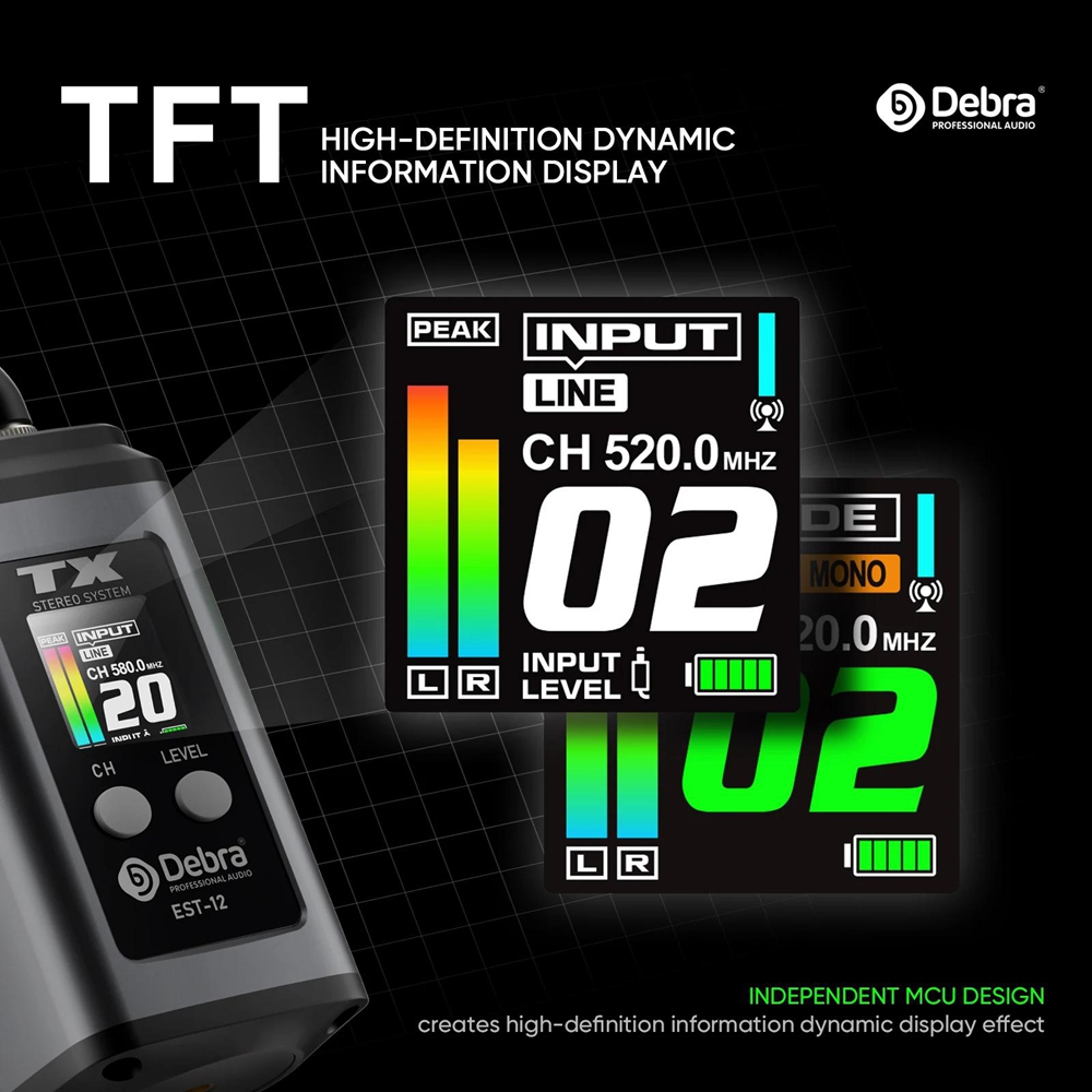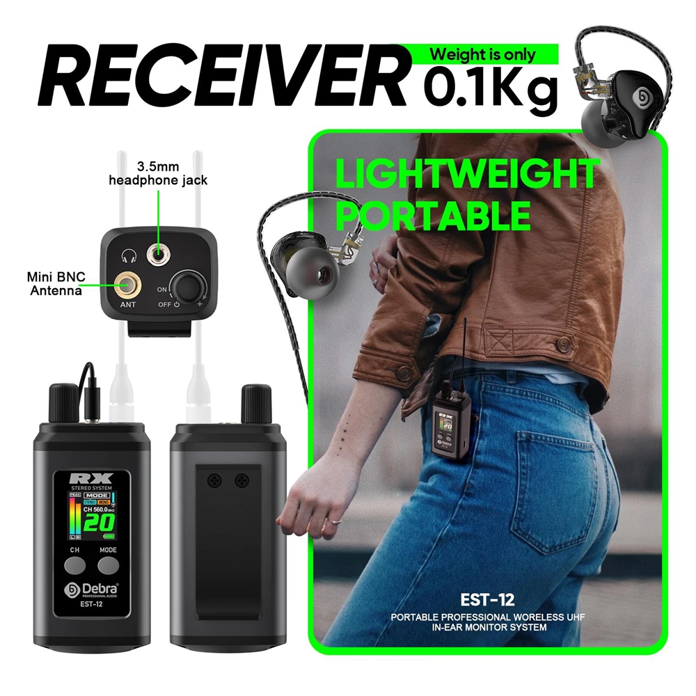 White EST-12 Stereo In-Ear Wireless Monitor UHF Portable Professional IEM System with TFT LCD Display