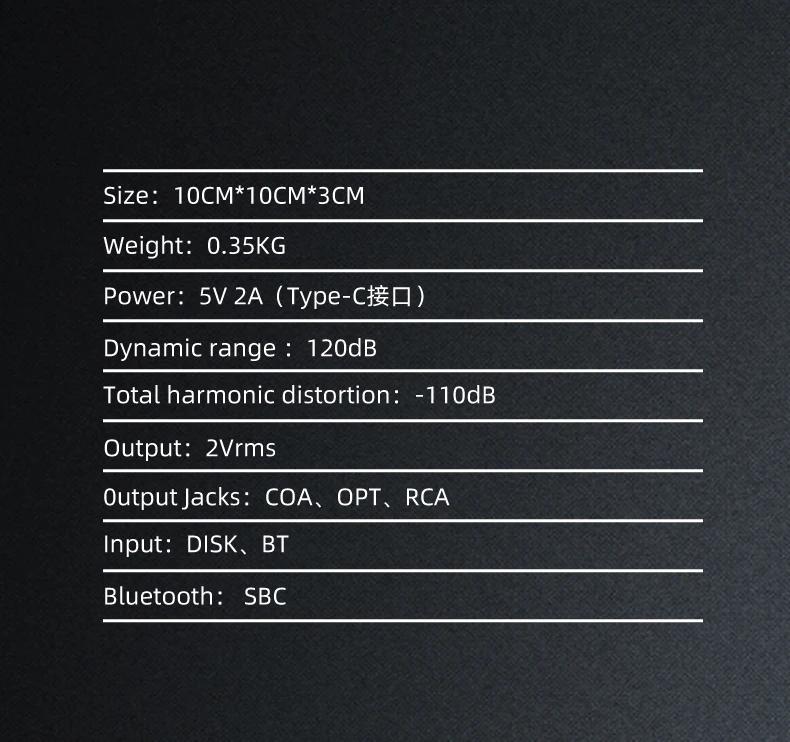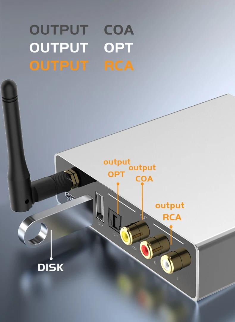 WIMLIM C5 HiFi Lossless USB Flash Drive Player Audio Decoder ES9018 Bluetooth5.3 Receiver OPT/COAX/RCA Output