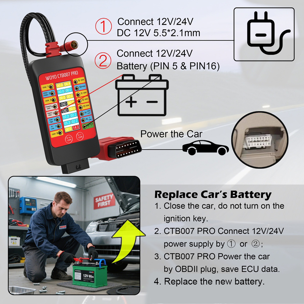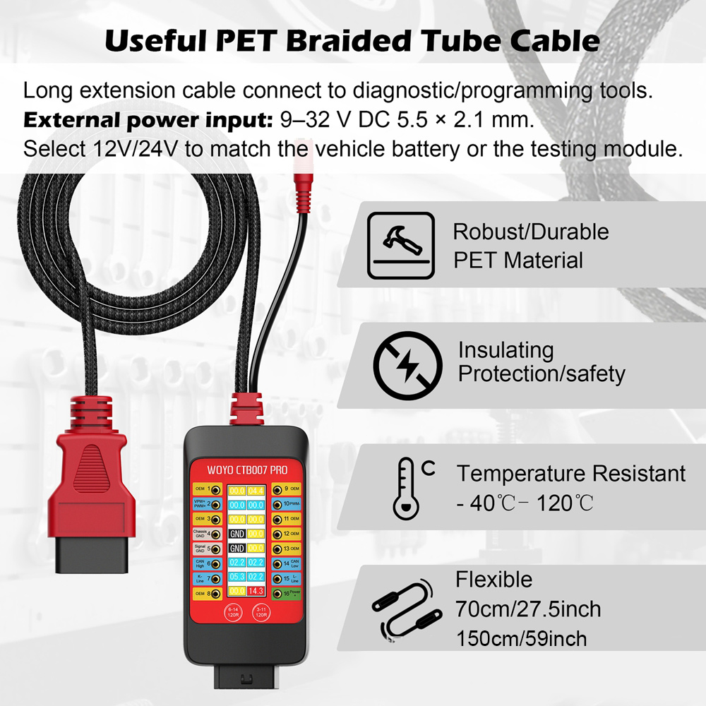 WOYO CTB007PRO OBD2 Universal Jumper Box Digital Display Break Out Box with 70cm Extension Cable