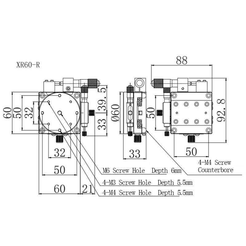 XR Axis 60*60mm Manual Displacement Platform High Precision Optical Platform XR60-R