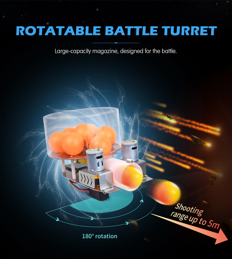 180° steering gear, all-round fire, no dead angle against,shock experience. And shooting range up to 5M.