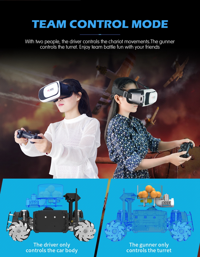 With two people, the driver controls the chariot movements.The gunner controls the turret. Enjoy team battle fun with your friends.