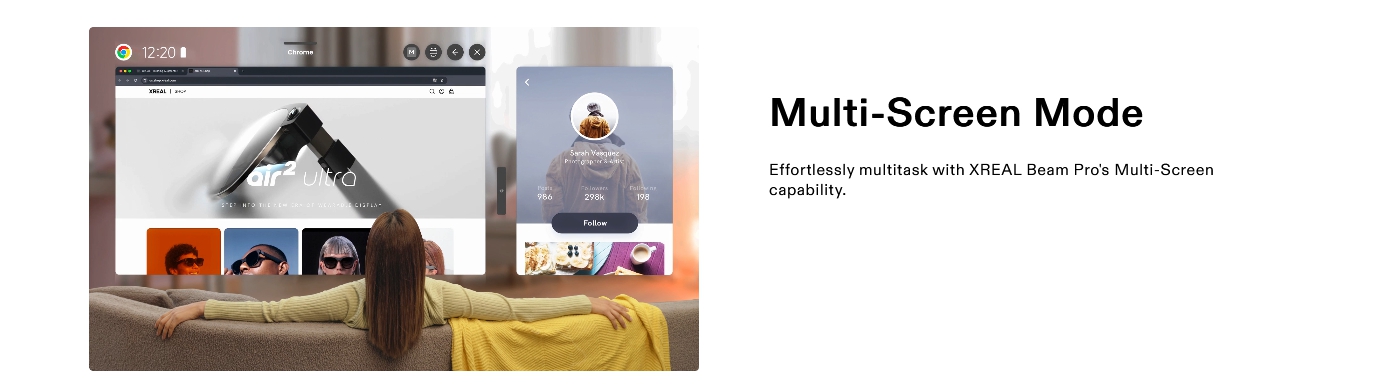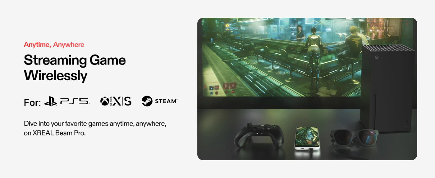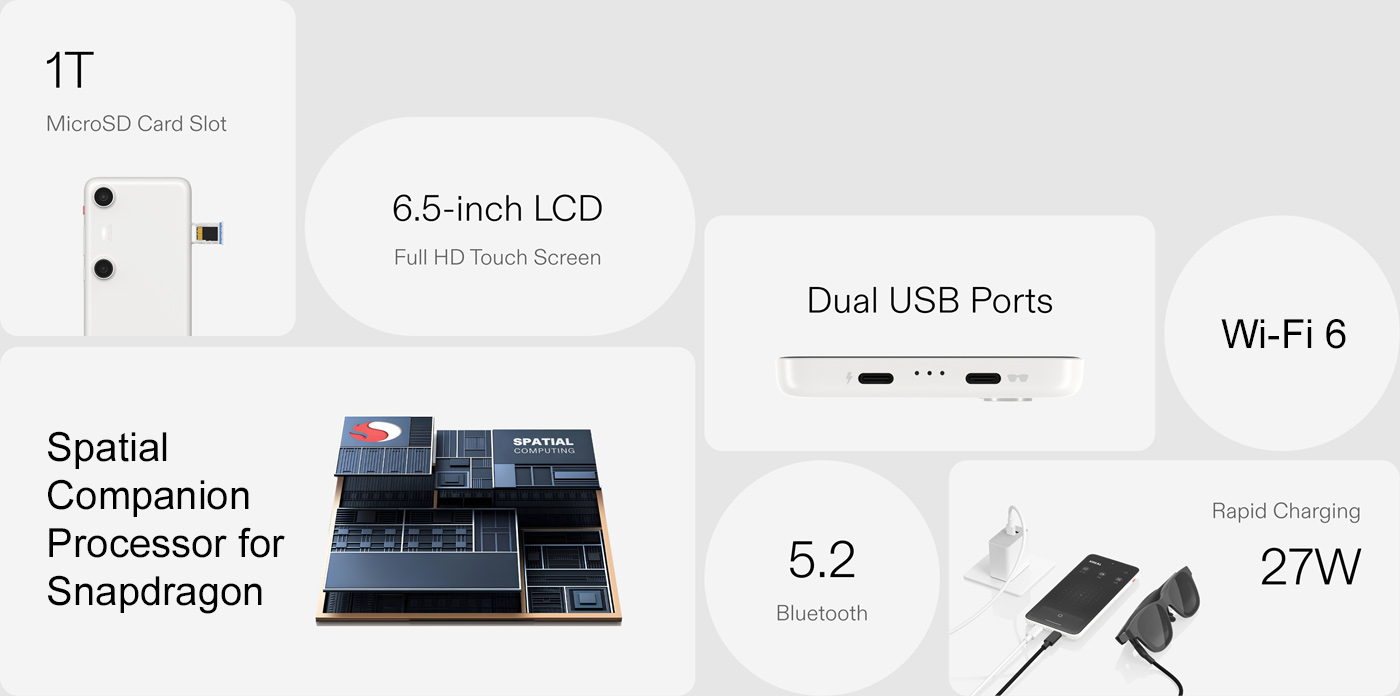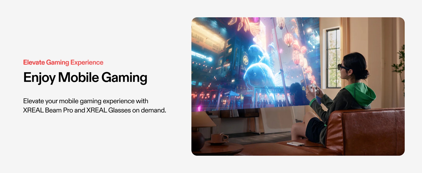 What is XREAL Beam Pro?XREAL Beam Pro is a spatial computing device designed specifically for XREAL AR glasses. Like a phone, it supports a vast array of mobile app content, with zero-barrier interaction, allowing for effortless hovering in a large-screen space for binge-watching and gaming on the go. It also supports true 3D image record, delivering smoother, more comfortable, more versatile, and higher-quality AR spatial experiences for users.