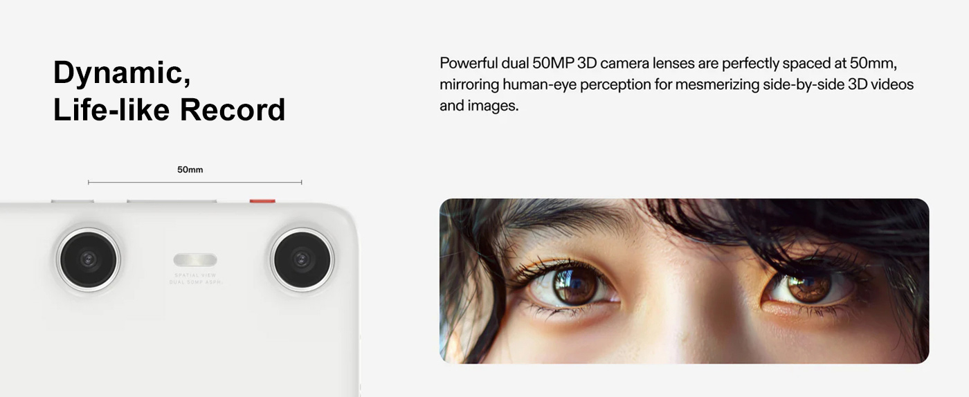 * Cameras: Dual 50-Megapixel 3D Cameras