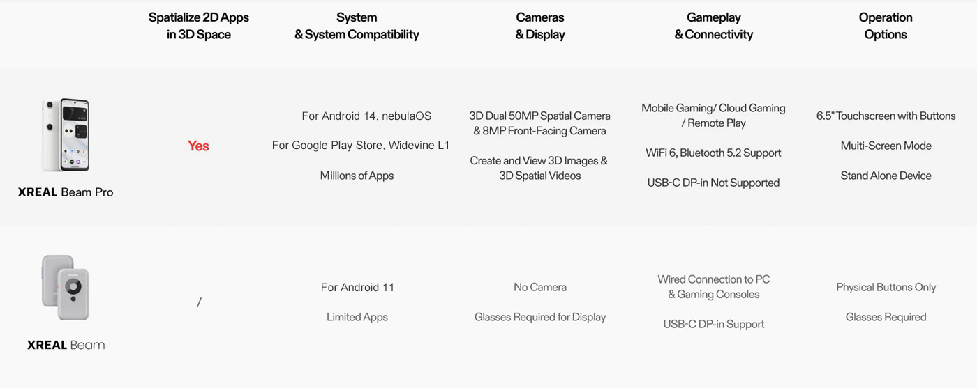 XREAL Beam Pro AR Glasses Terminal (Wifi 8GB + 256GB) with Dual 50MP 3D Cameras + 8MP Front Camera