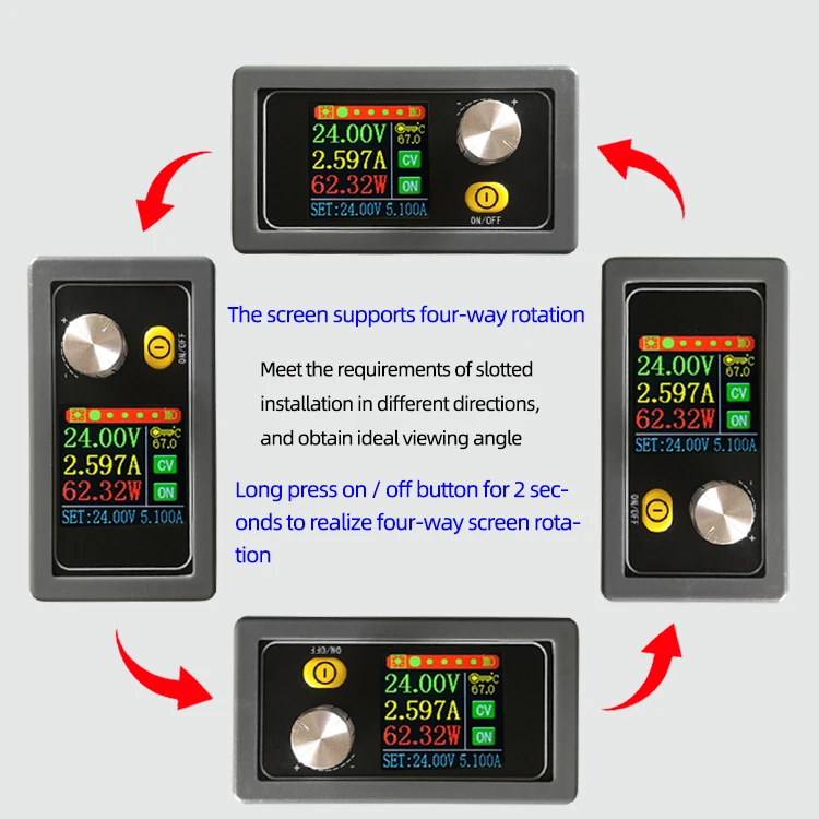(1) determine the floating charge voltage and charging current of your rechargeable battery; (if the parameter of lithium battery is 3.7V/2200mAh, the floating charge voltage is 4.2V; if it is 12V rechargeable battery, generally set the floating charge voltage to about 14V)