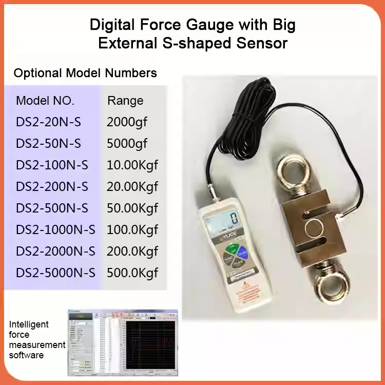 YLICE DS2 Digital Force Gauge Push Pull Scale with Big External S-shaped Sensor (20-5000N Optional)