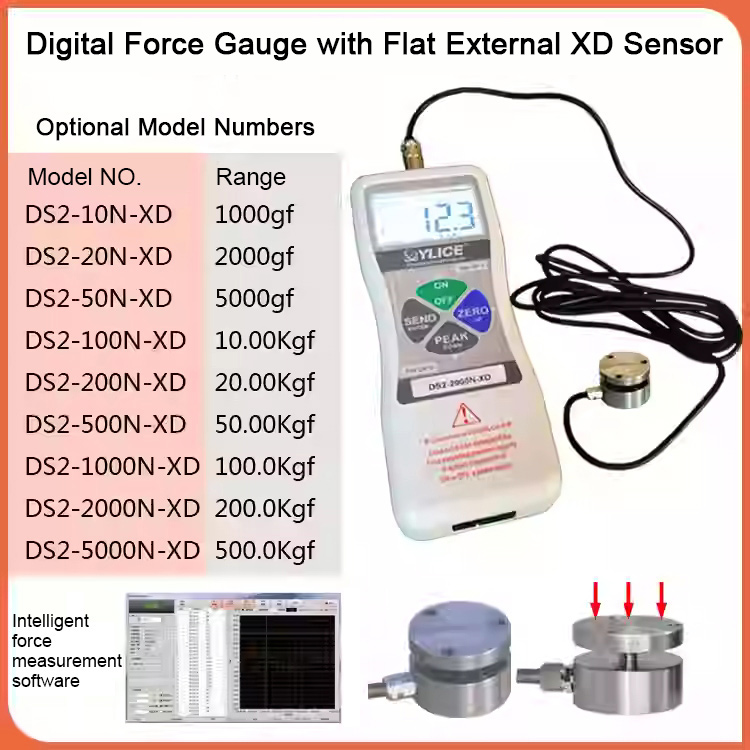 YLICE DS2 Series Digital Force Gauge Push Pull Scale w/ Flat External XD Sensor (10-5000N Optional)