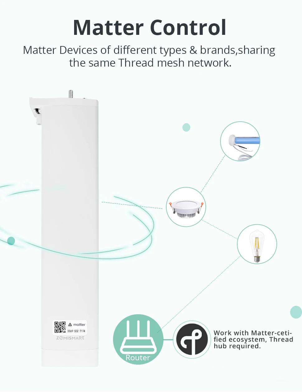 - Matter control: support Matter-cetified ecosystem, Thread hub required.