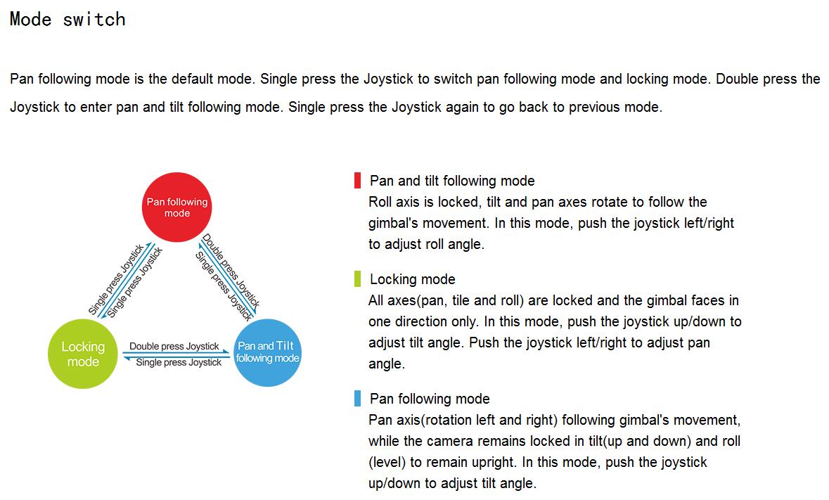 - Roll axis mechanical movement range360°(unlimited rotation)