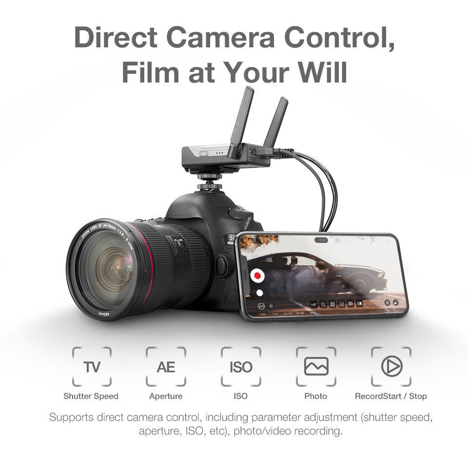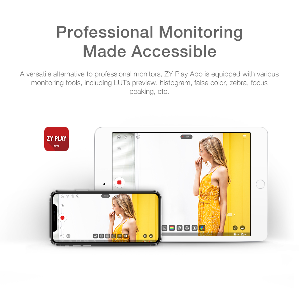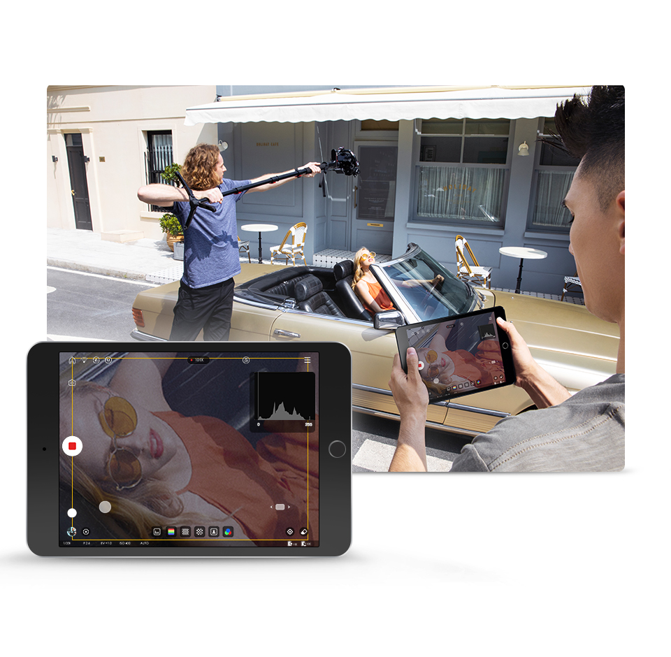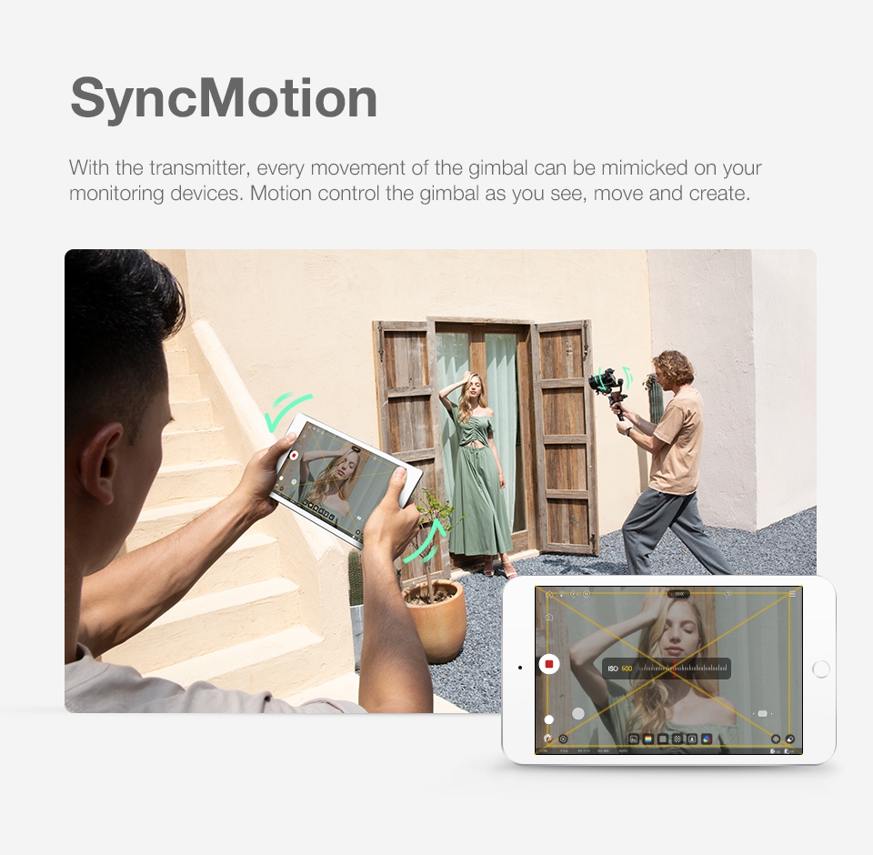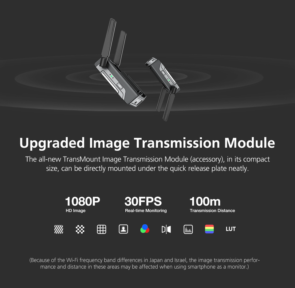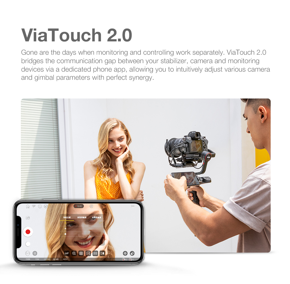 -When mounted with image transmission receiver and transmitter, up to 3 devices can be connected to your stabilizer, including not only smartphones and iPad, but also professional monitors.