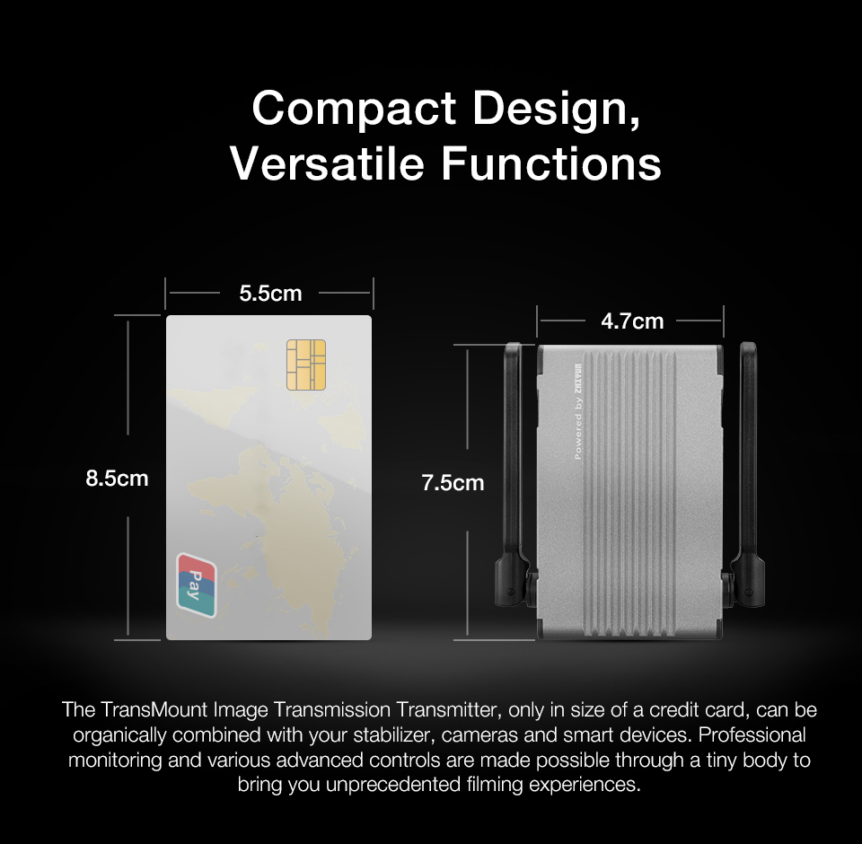 -The all-new TransMount image transmission module, in its compact size, can be directly mounted under the quick release plate neatly.