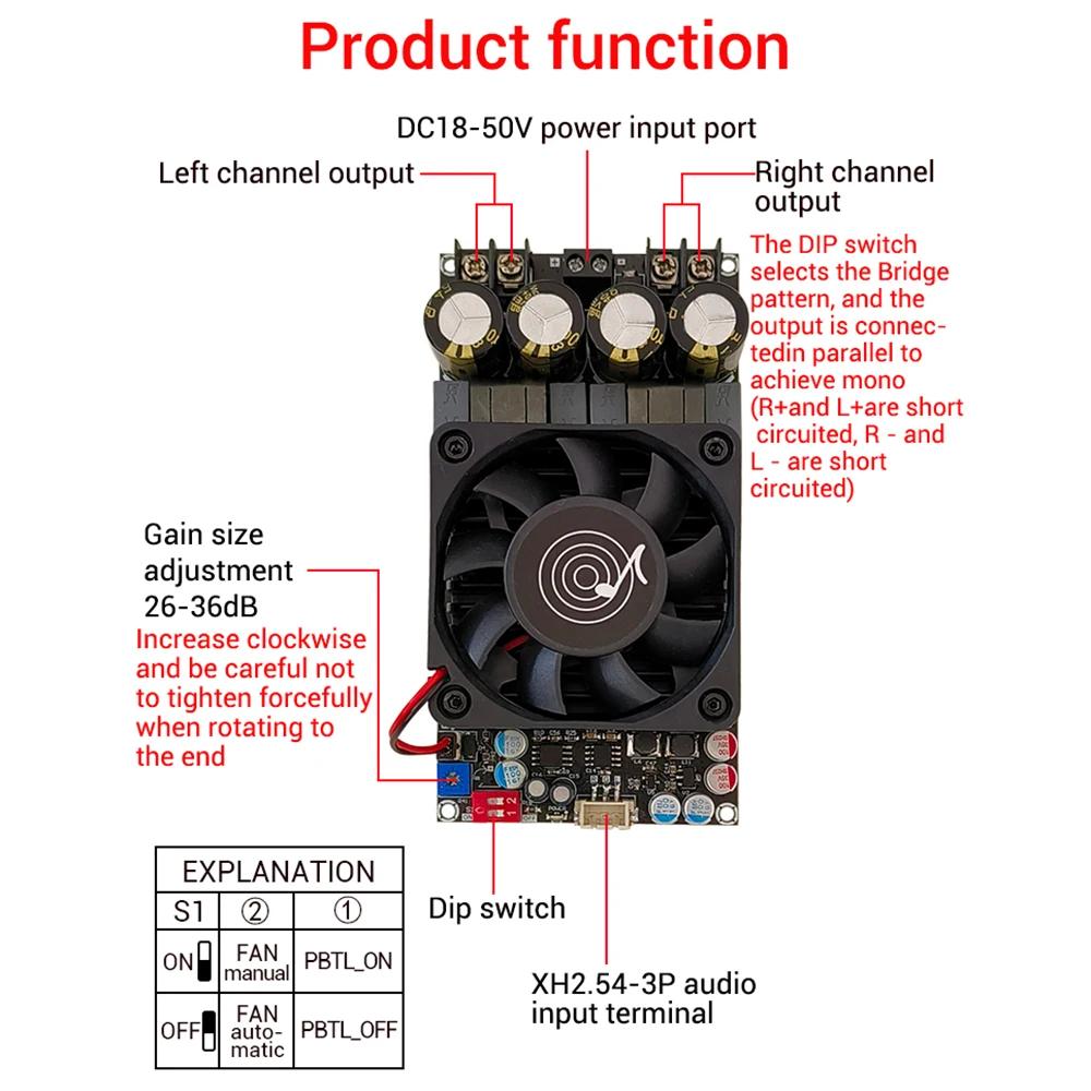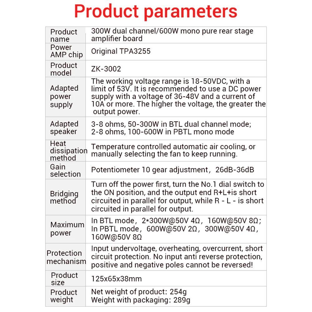 ZK-3002 HiFi Stereo TPA3255 Chip Digital Power Amplifier Board Class D 600W High Power Amplifier Board Support Bridge Connection