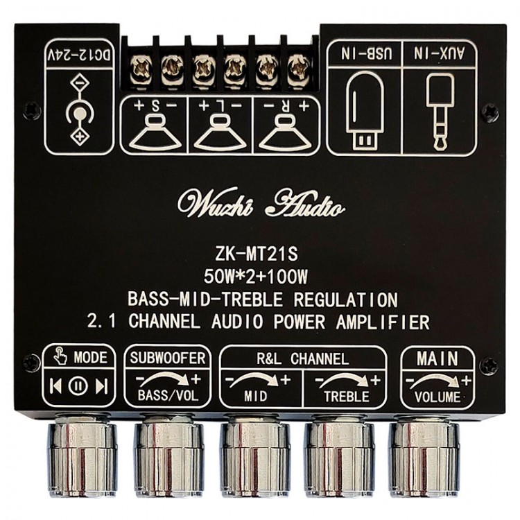 ZK-MT21S 50W*2+100W 2.1 Channel Bluetooth Amplifier Module Power Amp Bass-Mid-Treble Regulation