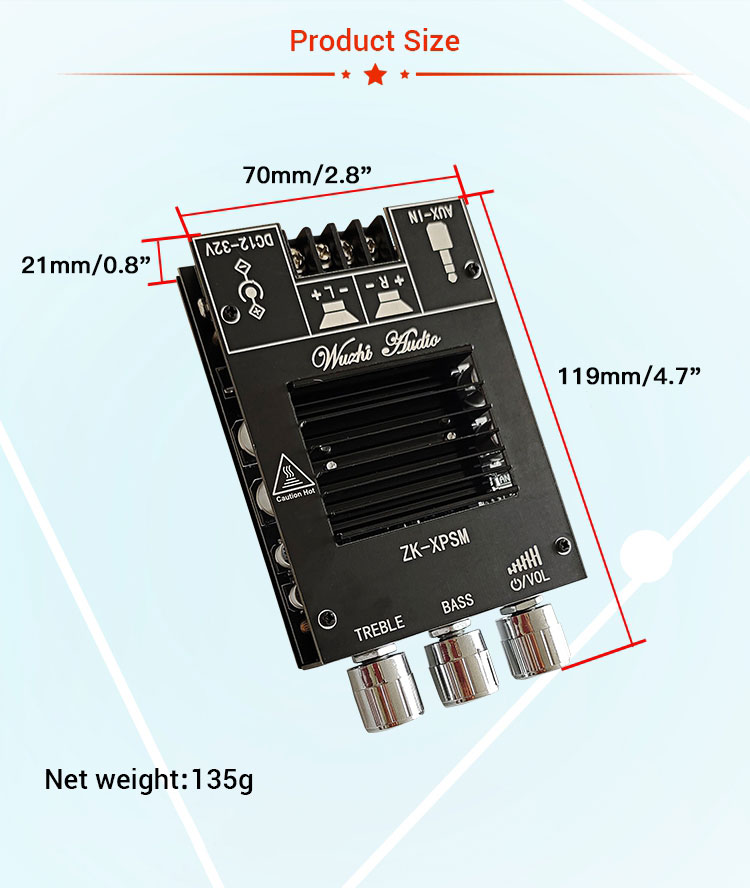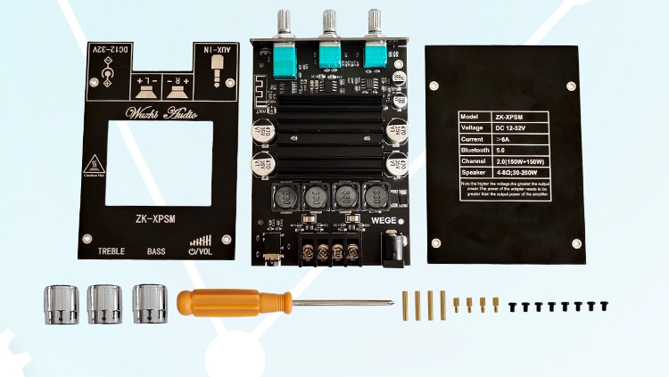 ZK-XPSM Stereo Bluetooth Amplifier Module 150W*2 Bluetooth 5.0 Amplifier Board Adjusts Treble Bass